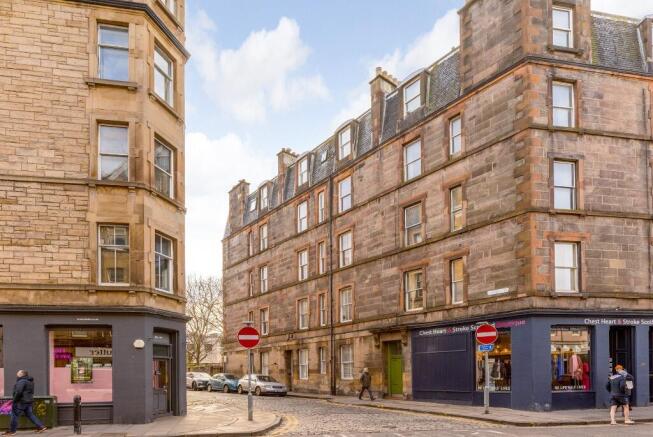This is a well presented top floor one bedroom flat in a traditional tenement in the highly desirable Stockbridge area of Edinburgh. The flat comprises: welcoming hall with storage cupboard; bright open plan living room/kitchen, the kitchen has wall and base units, tiled splashback and integrated appliances; large double bedroom with built-in wardrobes; a spacious second room that can be used as a home office or study; tiled shower room and separate WC.