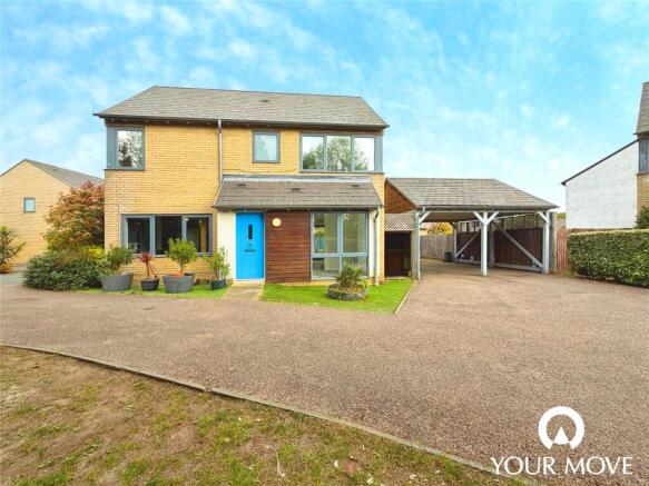 Upstairs, the master double bedroom includes built-in wardrobes and an en-suite shower room. Two further double bedrooms are served by a family bathroom with bath and overhead shower. A flexible play room/office offers additional space for work or family use. Externally, the property benefits from a garden, parking and a car port.