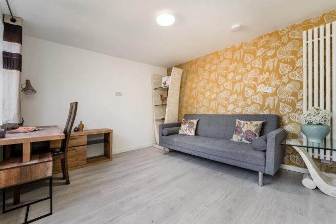 The studio is furnished with; double bed, wardrobe, chest of draws and bedside table in the bedroom area. The bathroom is furnished with shower cubical, WC, basin with cabinet, heated towel rail. The kitchen offers; built in oven, hob and extractor hood, combined washer dryer, fridge freezer, sink, kitchen cabinets and a high level dining table with bar stool seating. The lounge area offers, sofa, side table, side board, desk with office chair, feature shelf unit.