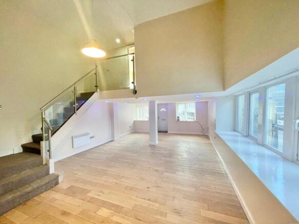 The first floor is separated into two, and is accessed via the feature double staircase with glass balustrading.