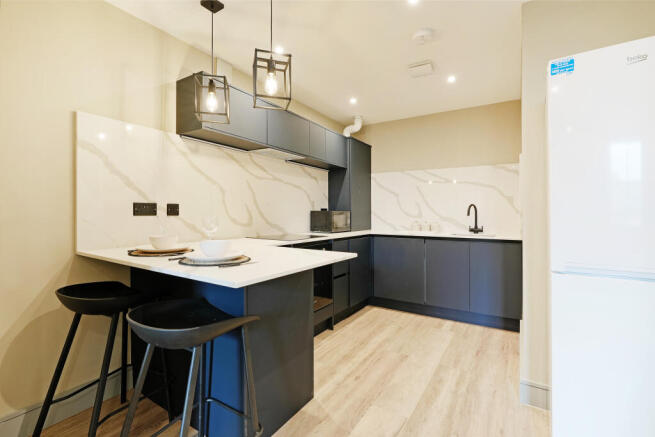 Fully refurbished large, two bedroom apartment in an unbeatable Sheffield City Centre location! Finished to an exceptional standard, the open-plan layout features a spacious living area with two comfortable sofas, a large wall-mounted 55-inch Smart TV, and a stylish kitchen complete with ink blue cabinetry, marble worktops, integrated appliances, and a generous breakfast island. Both double bedrooms provide comfortable, well-furnished spaces. The luxury bathroom is fully tiled in marble, creating a sleek and contemporary feel. With high-speed Wi-Fi included and the option to rent directly from a trusted local landlord, this apartment delivers a premium city living experience in the heart of Sheffield.