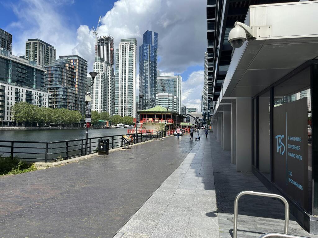 Prominent ground floor commercial dockside units available to let in South Quay close to Canary Wharf. Suitable for a number of uses