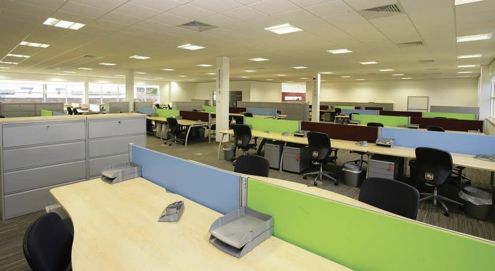 + 3 storey steel frame, composite panelling and glazed curtain walling + Raised access floor with 225mm void + Floor distributed heating/cooling + Local VRV for perimeter comfort + Recessed LG3 lighting within the suspended ceiling + 8 person lift serving all floors + 106 allocated car parking spaces + Male, female and disabled toilets plus shower and cleaner's facilities on each floor + 3m finished floor to ceiling height + Power provided by 22,000 volt ring main + 500kva transformer installed + Each wing individually metered + Duct access to front and rear of building + Service trench access to gable elevations + Extensive riser space for flexible fit out + External areas for additional plant + Generous clear internal plant space + Training / conference room available