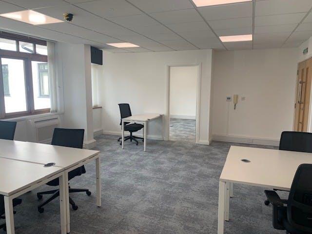 The suite comprises an open plan office with one private meeting room. The offices benefit from excellent natural daylight, their own WCs and a kitchen.