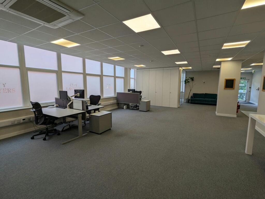 Large open plan office which is modern throughout. The suite offers two meetings rooms, two W/Cs, a comms room and a kitchenette. Suite 3 is dual aspect which allows plenty of natural light to fill the room making it feel spacious throughout. There are also 5 car parking spaces.