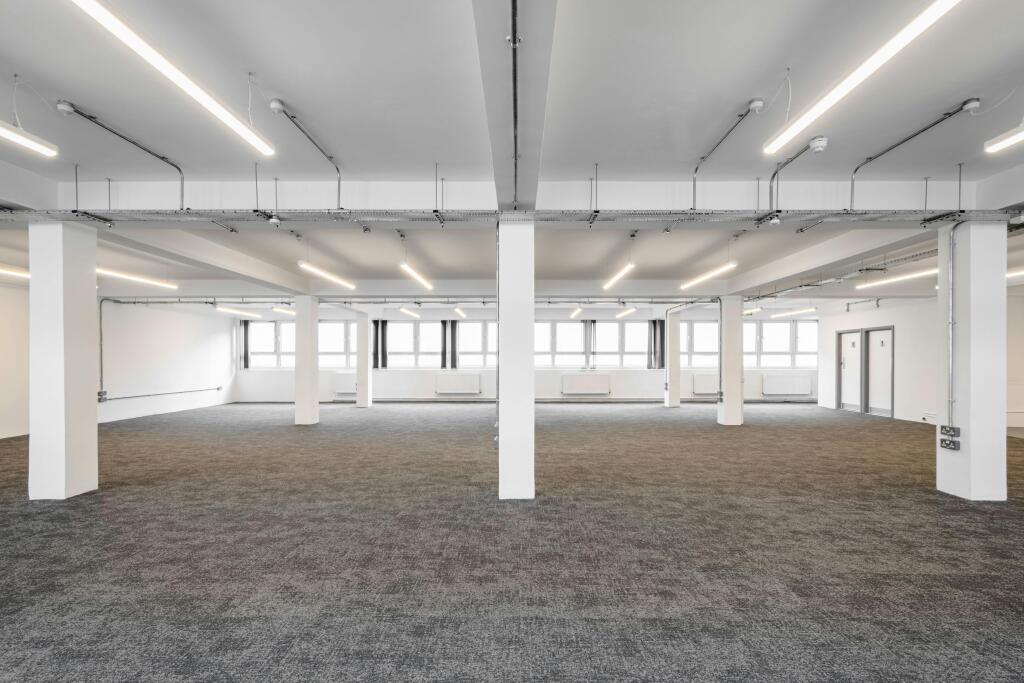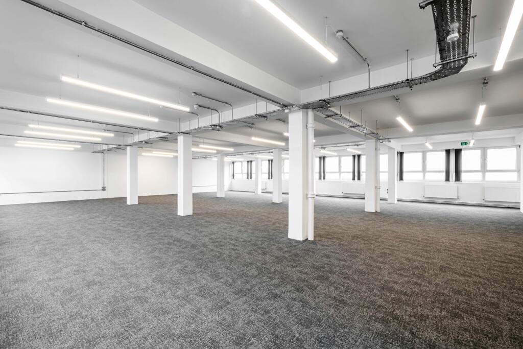 The available accommodation comprises a third-floor office located on the eastern side of this large multi-storey building. The space benefits from excellent natural light, with windows on both sides, and features a predominantly open-plan layout alongside a generous kitchen and dining area. This workspace is ideally suited for small to medium-sized businesses seeking a bright, flexible environment close to Aldgate East station.