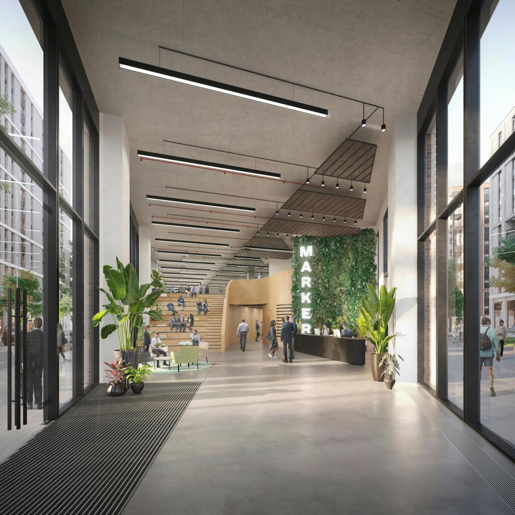 Twelve Trees Park is a substantial new development comprising over 3,800 homes, a new school, bars, cafés, restaurants, a community hub and 12 acres of green space. Strategically positioned, The Marker Building is 150 metres from the entrance to West Ham Station, providing easy access across London and beyond.
