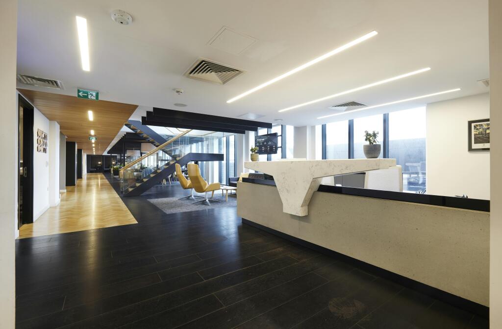 4A Platform is a prime Grade A office space located in Leeds City Centre, next to Leeds Railway Station. The fully fitted 2,763 sq ft suite offers modern, flexible workspaces with high-quality fit-out, energy-efficient LED lighting, full-height glazing, and raised access floors. On-site amenities include secure cycle storage, showers, a communal roof terrace, meeting rooms, and event space, making it ideal for businesses seeking a collaborative and sustainable environment. With its central location and excellent transport connections, Platform offers a dynamic workspace that combines convenience with modern office features.
