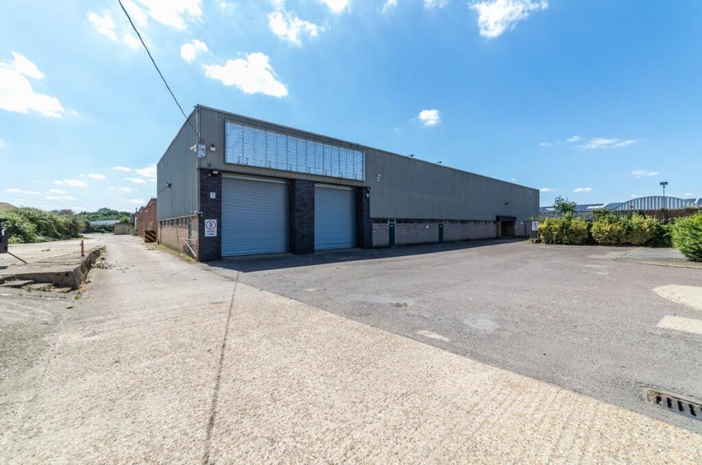 The property comprises one large detached building with two separate smaller buildings at the entrance to the site with parking and loading areas/yards to the front of the units.