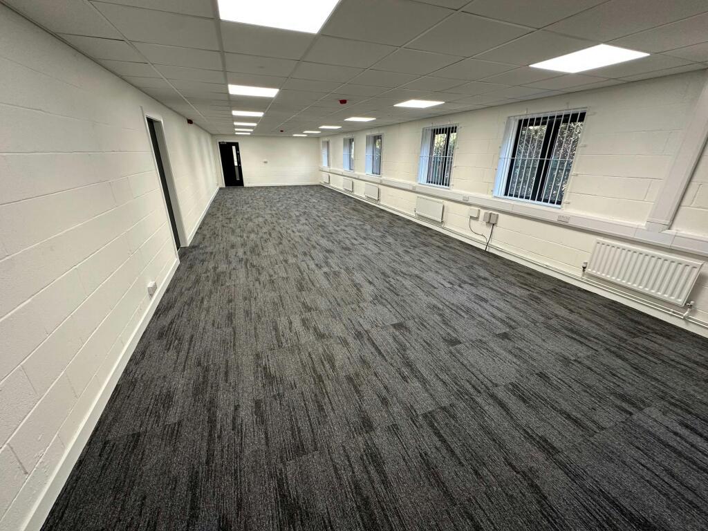 The unit extends to 5,569 sq ft and is of steel portal frame construction, incorporating a secure yard, 6.2 metre minimum eaves height, concrete flooring, and a steel-clad roof. It includes integral office accommodation, a fitted kitchen, and male and female WC facilities, making it well-suited for a range of industrial or distribution uses.