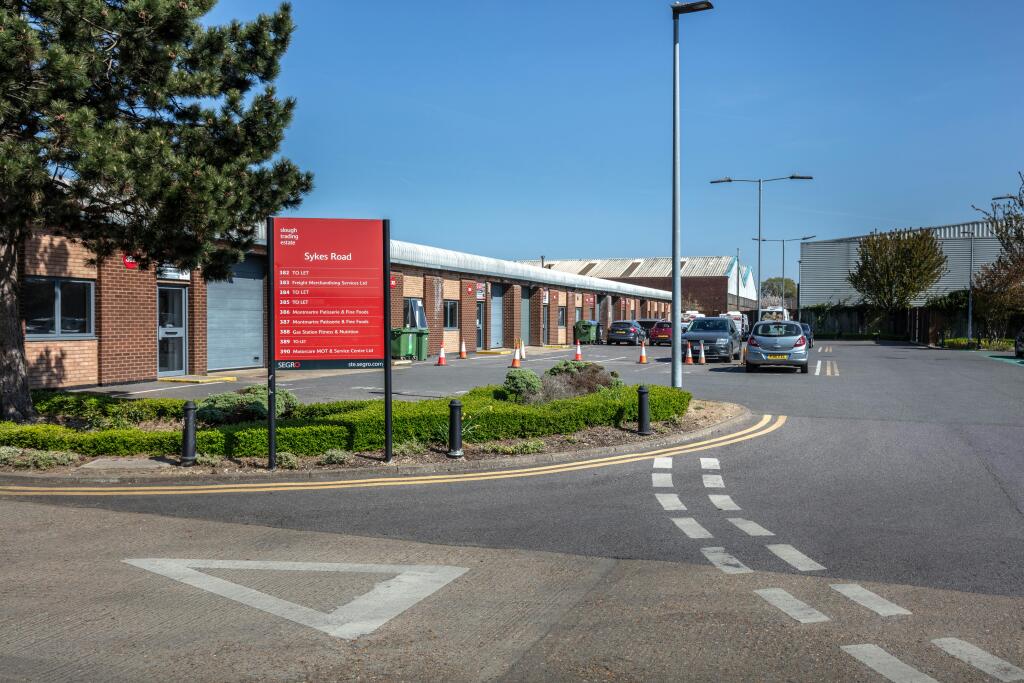 Sykes Road benefits from multiple access routes from Buckingham Avenue, which is the main throughfare through Slough Trading Estate.