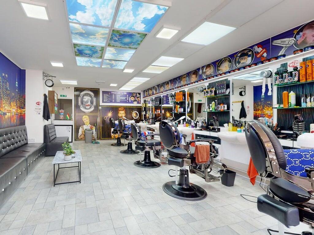A double-fronted shop with a central doorway. Presently let as a Turkish Barbers with provision for five basins. To the rear is an inner hallway with a cupboard housing the hot water cylinder and doorways leading to a cloakroom/WC with a modern suite with fully tiled walls and floor; and access leading through to the courtyard.
