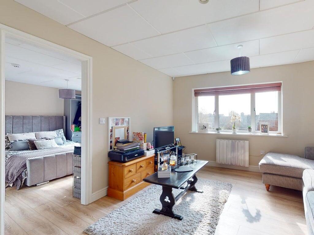 A sizeable one-bedroom apartment with an additional room, overlooking the High Street comprising; hallway, a spacious open plan living room with a Victorian style fireplace (not usable) and fully fitted kitchen with a window overlooking the courtyard, a double bedroom, store room, and shower room. Energy Performance Rating D, Council Tax Band B