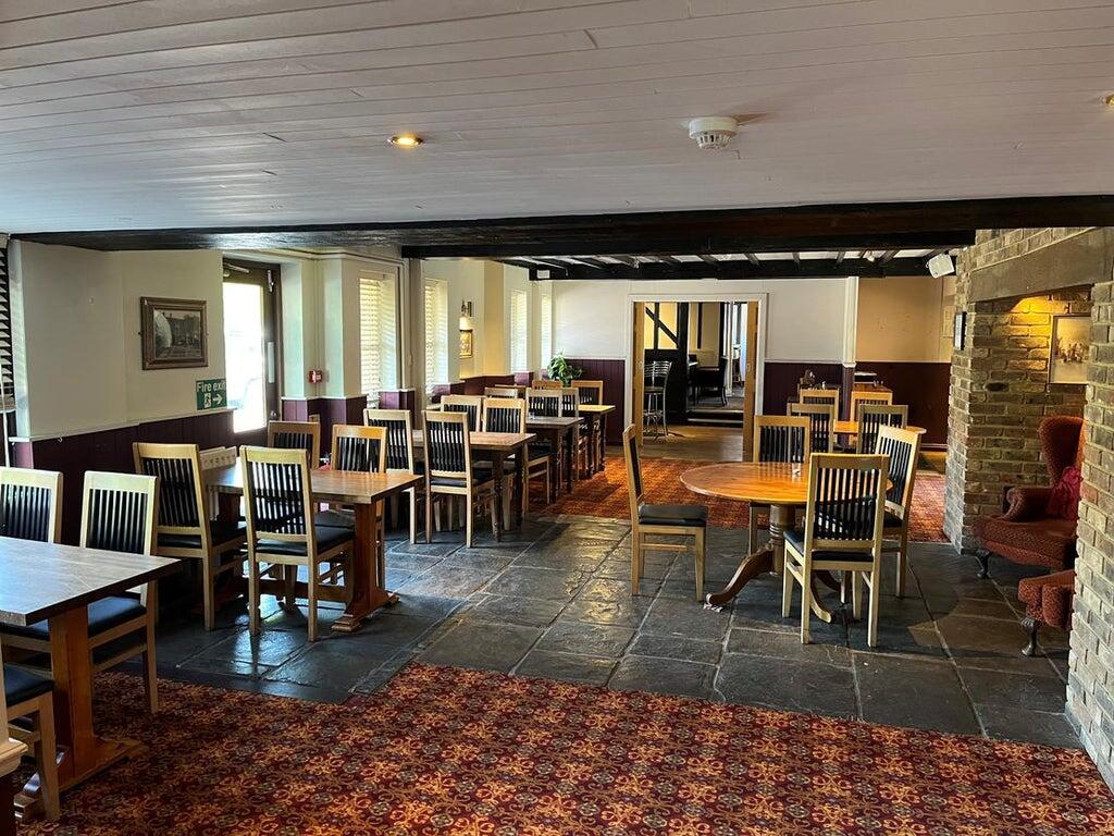 Bar and restaurant, with self-contained access from the street and reception. Central curved bar servery, flag stone floor, seated area (approximately 40). Restaurant (approximately 40) with feature Inglenook styled fire surround, access to courtyard, guest bedrooms and from rear car park.