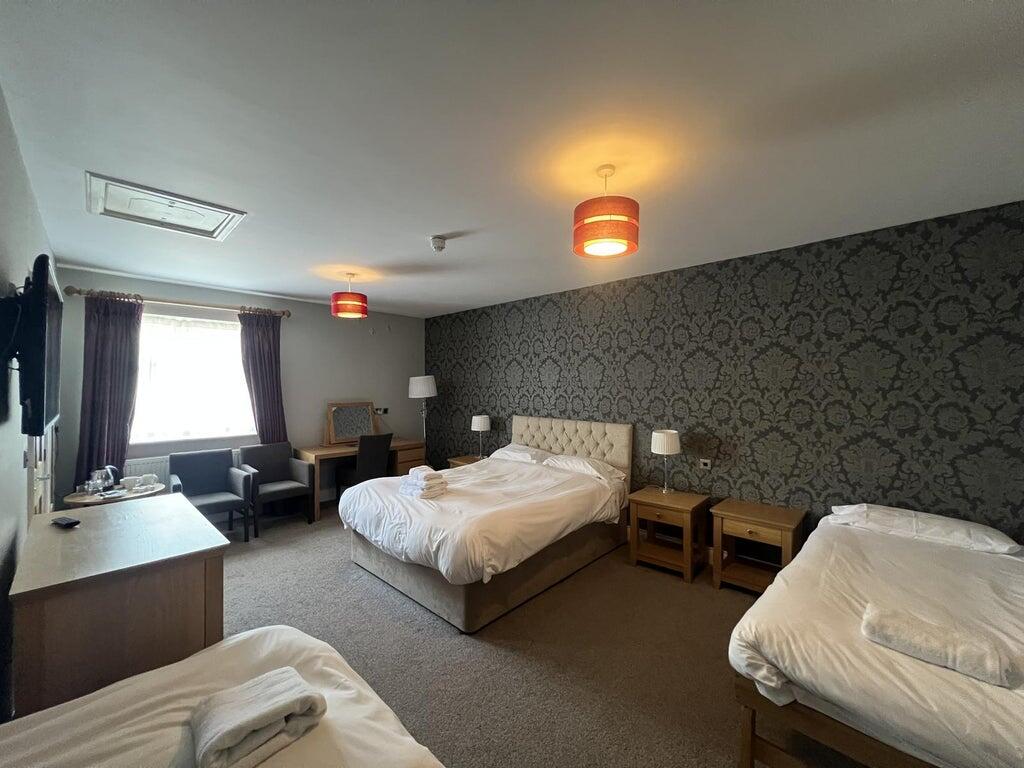 A three-star, 30 en-suite bedroom hotel set over two floors. Room types include twin, double with bath, double with shower and family. The rooms include integrated furniture including bedheads, wardrobes and vanity. The reception area is to the front of the building, which provides access to the restaurant as required.
