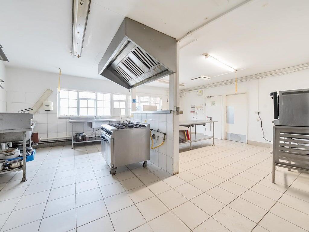 The ground floor includes customer toilets and a large commercial kitchen space, although the kitchen is currently unfitted. This layout offers flexibility for a range of hospitality uses, from casual dining to a more formal restaurant service.