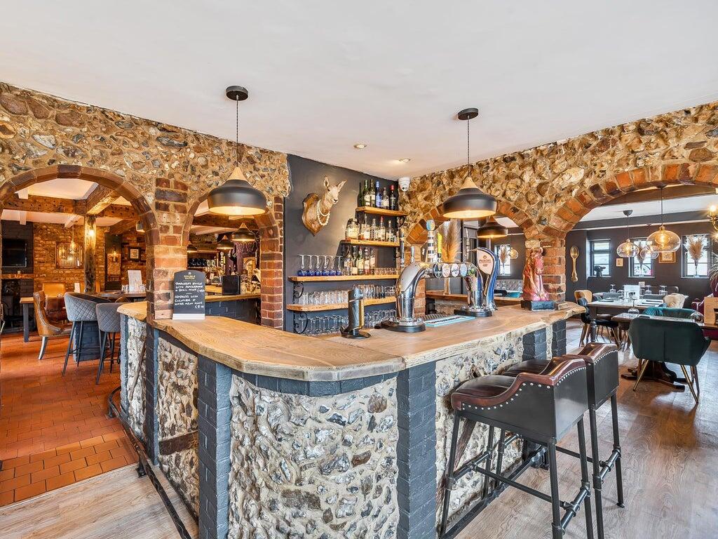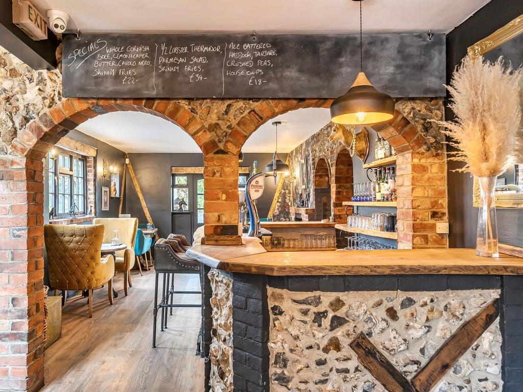 The building is of attractive brick construction with tasteful interior design elements, including exposed brickwork and stylish furnishings. The layout flows naturally from the main bar through to additional seating areas and a dedicated dining room, making it ideal for both casual drinkers and destination diners.