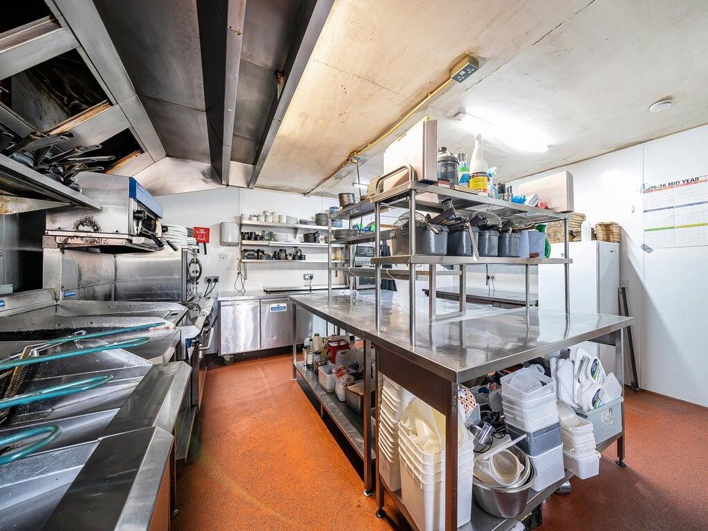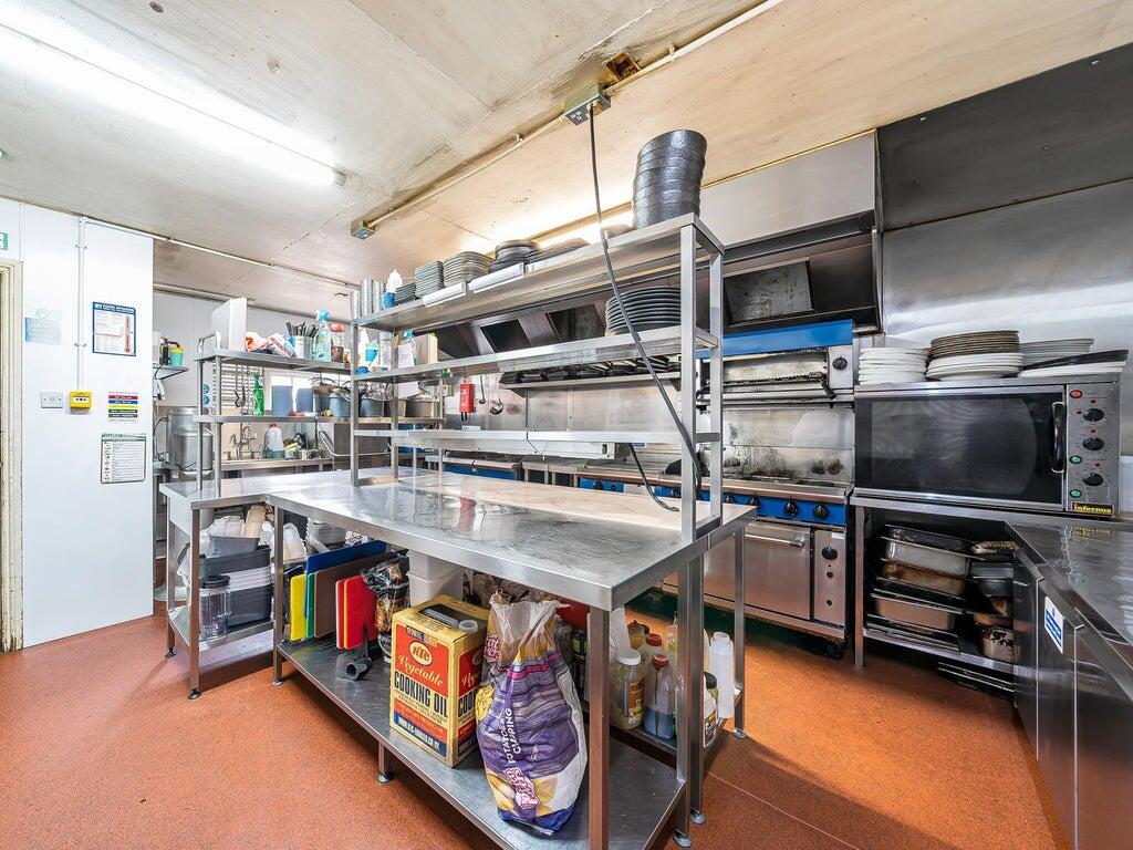 To the rear of the property is a well equipped commercial kitchen, designed to support a high volume food operation, and a ground floor cellar providing practical storage and service access.