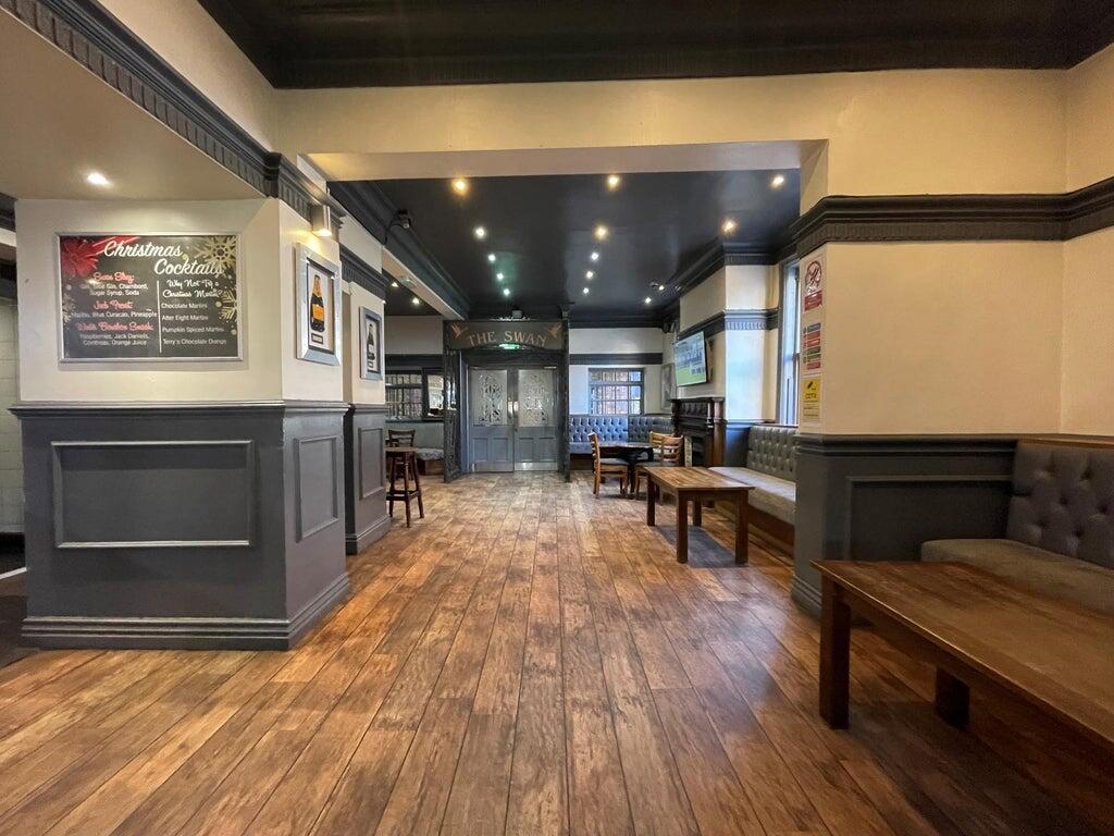 Ground FloorThe Swan – the main trading area is U shaped, over split levels, with a central bar servery. To the rear, there is a DJ booth and dancefloor leading to a double door into the courtyard. The room is furnished with both fixed and freestanding furniture.