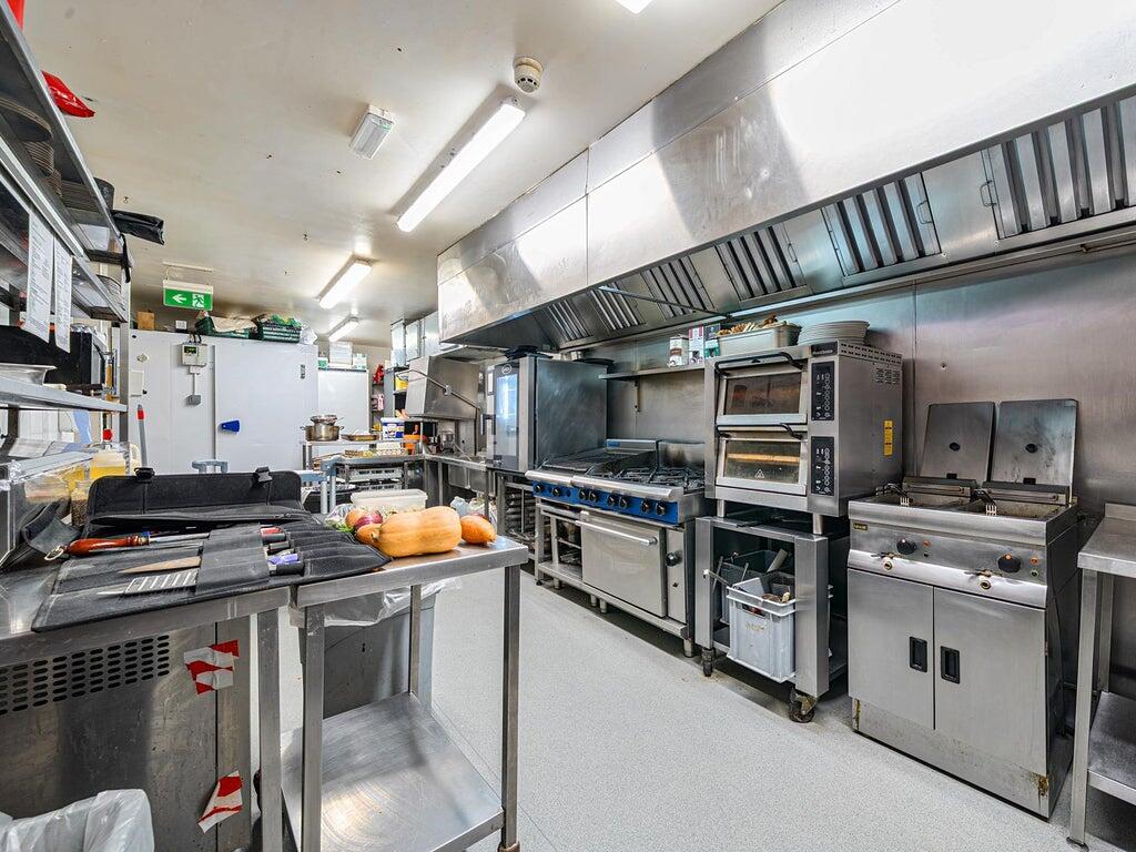 Ground floor cellar, office, fully equipped commercial kitchen with full extraction, walk-in fridge, pot wash area and storerooms.