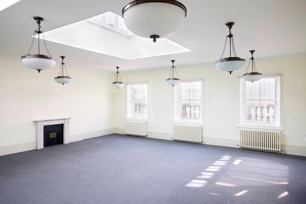 Large, bright room featuring a stunning lantern skylight and beautiful original listed features. The space connects to an adjoining room, ideal as a meeting area, breakout space, or private executive office. Enjoy impressive views across iconic London landmarks.