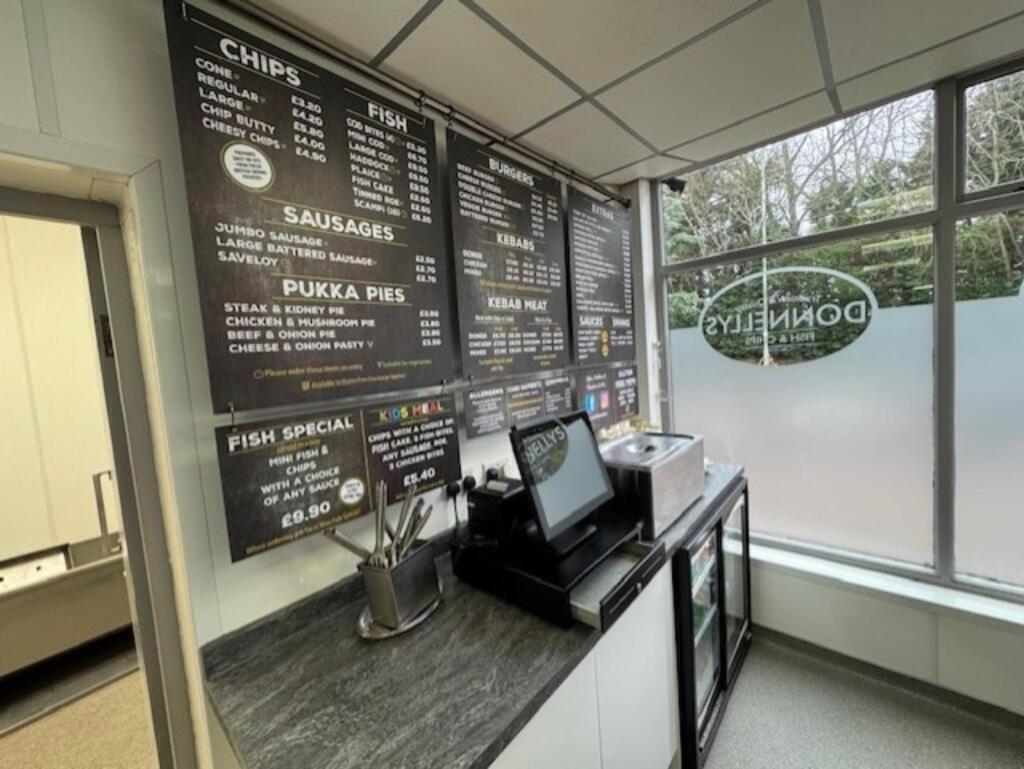 Since ownership they have continually invested in new equipment along with fixtures & fittings which are all bought and paid for and included within the sale price which is a huge plus for any new purchaser as additional funds will not need to be spent for some time. Donnellys Fish & Chips is owner operated with the help of 4 part time members of staff and has an impressive weekly turnover. More details on application. Approximately 70% is walk-in trade with the remaining 30% deriving from their own delivery app. They serve a fine selection of fish & chips along with chicken, burgers, pies, sausages, saveloy’s, kebabs, sundries, condiments and cold drinks.