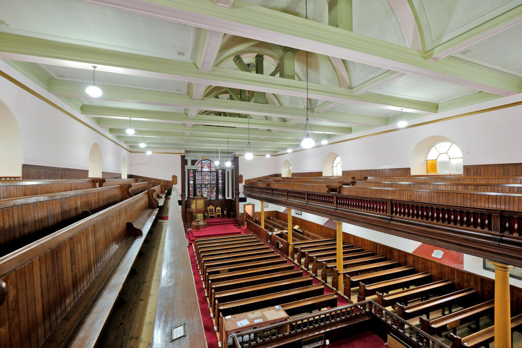 Main church hall and mezzanine balcony, meeting rooms, storage room and a WC