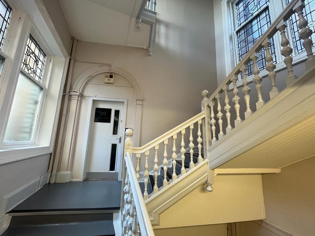 Access from street level via refurbished common areas where a staircase provides access to the upper floors