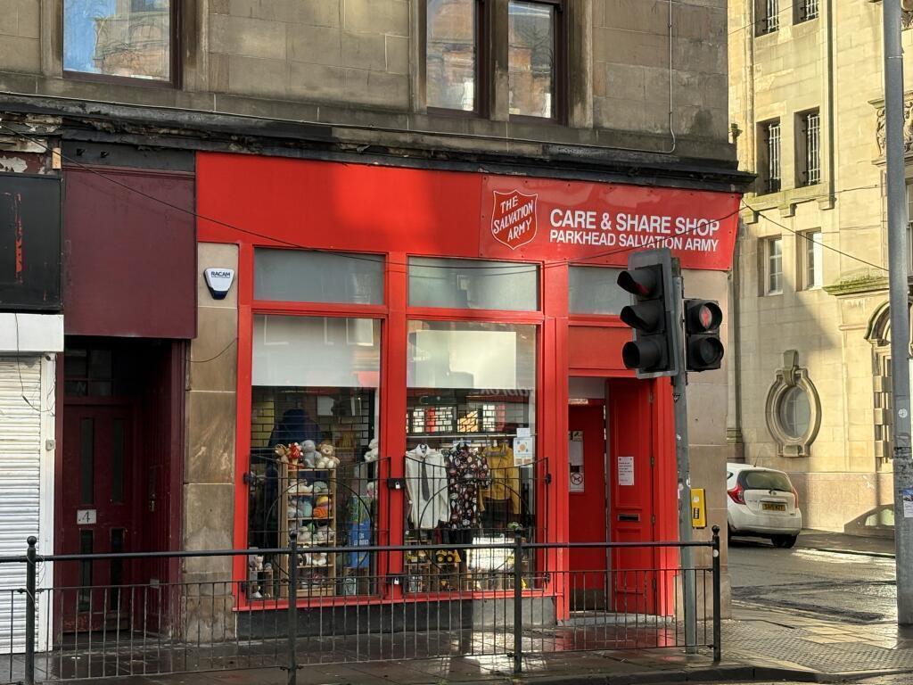 - Shop frontage on both Tollcross Rd and Burgher St elevations.
