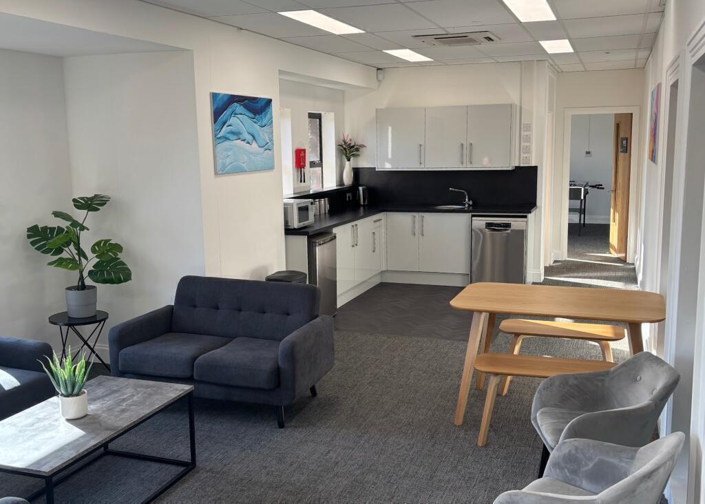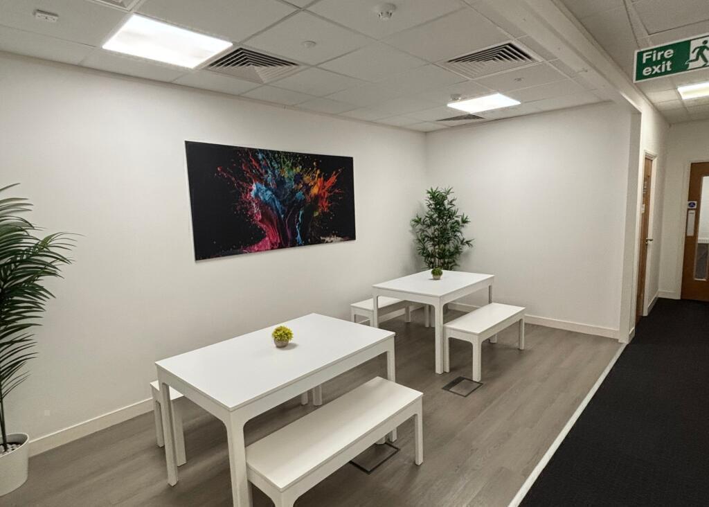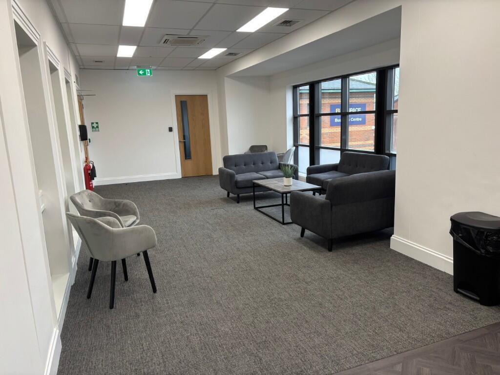 The centre provides a bright and professional working environment with air-conditioned offices, LED lighting, modern breakout areas and meeting rooms for hire. The newly refurbished reception and shared spaces create a welcoming, contemporary business setting, featuring comfortable seating areas ideal for informal meetings or relaxation.