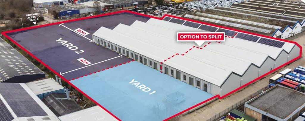 The property is a detached industrial/warehouse unit with large 3.45 acre secure self-contained yard that has a maximum depth of 80m.