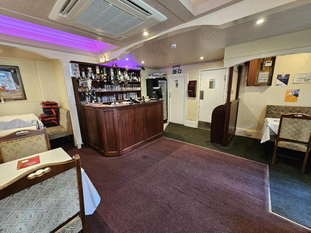 Steps to the front of the premises leading to the Main Customer Entrance door into an Entrance Vestibule with door into the Main Restaurant Area an air-conditioned open plan room with carpeted flooring, feature lighting, currently seating 42+ customers. Timber fronted and topped Bar Servery with associated back bar fittings, display shelving and optics, stainless steel sink unit and an upright glass fronted bottle fridge. Ladies and Gents WC’s. Commercial Kitchen with non-slip flooring, part tiled walls and being fitted with a range of commercial catering equipment to include:- extractor system with stainless steel canopy and gas interlock system, 8 burner gas range, tandoori oven, warming cabinet, 2 microwave ovens, stainless steel handbasin, twin deep bowl stainless steel sink unit, stainless steel workbenches with shelving below, wall shelving, chest freezer and 2 upright fridges. Basement Storage in 3 separate interconnecting areas with 2 chest freezers, an upright freezer, shelved dry goods and bottle storage.