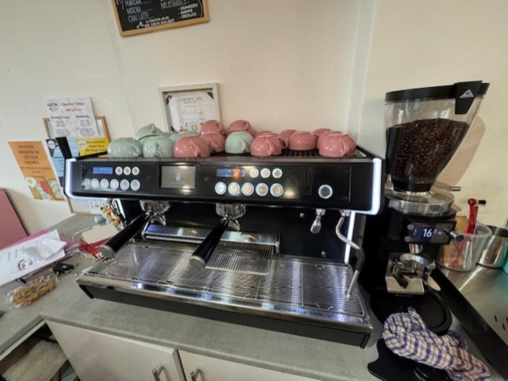 Café comprising: tables chairs & booth seating to cover (28), serve over sales counter with EPOS till & cash draw, undercounter drinks fridge (Klimasan), espresso coffee machine (Conti), coffee grinder (Compac), coffee knock-out draw, worktops, base units, saniflow water system, stainless steel sink, electric water heater (Triton), blender (Blendtec), wall mounted shelf and wall mounted paper towel dispenser. Soft play area with high quality Tigerplay village & slide and baby area with feature ceiling and 2 x wall mounted storage heaters.