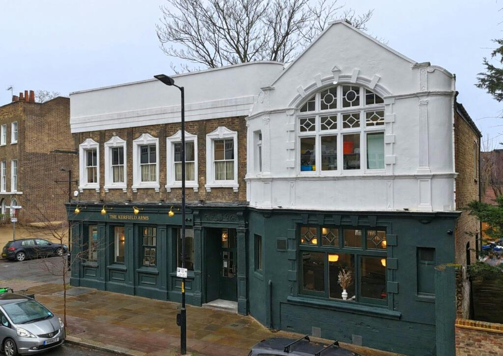 The Kerfield Arms is situated at the intersection between Grove Lane and Kerfield Crescent in a predominantly residential area. Denmark Hill Overground Station is located 0.4 miles (0.6 kilometres) to the south and provides Thameslink and London Overground services via the Windrush Line giving fast travel to the City of London (Blackfriars Station) in approximately 17 minutes.