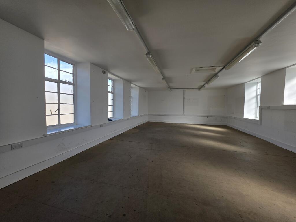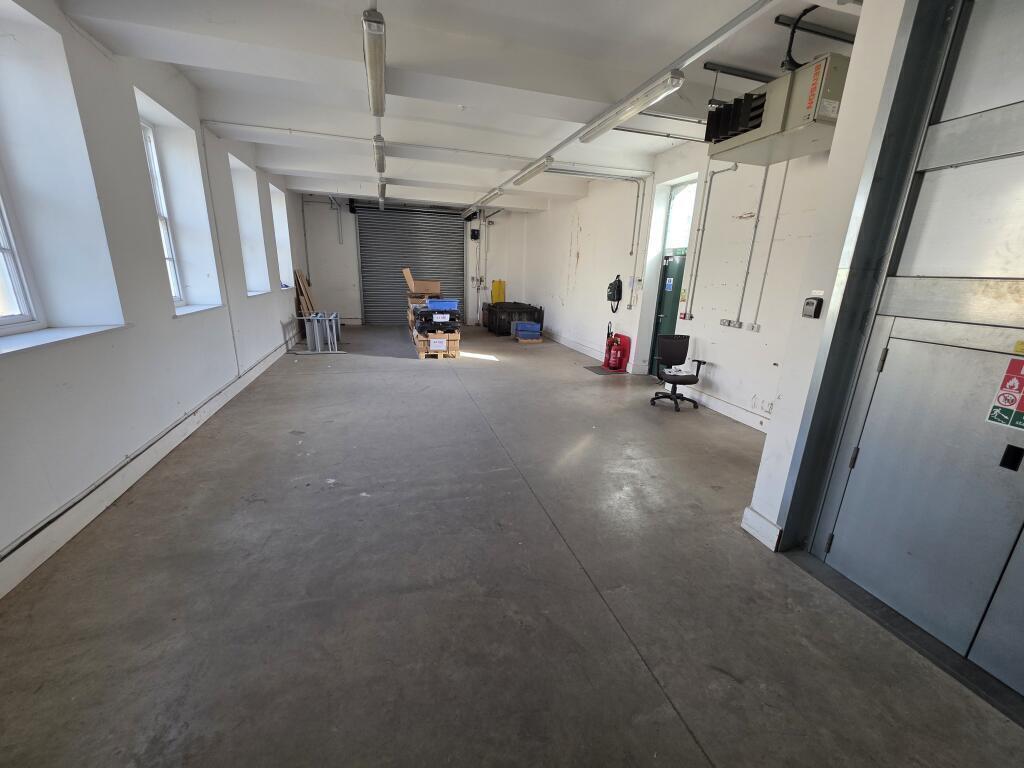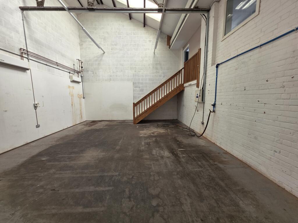 A ground floor workshop/studio/business unit with mezzanine offices and pedestrian access only.