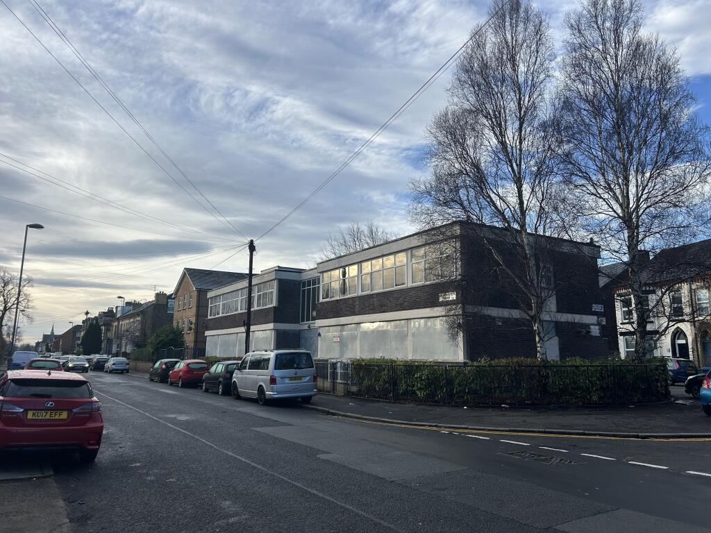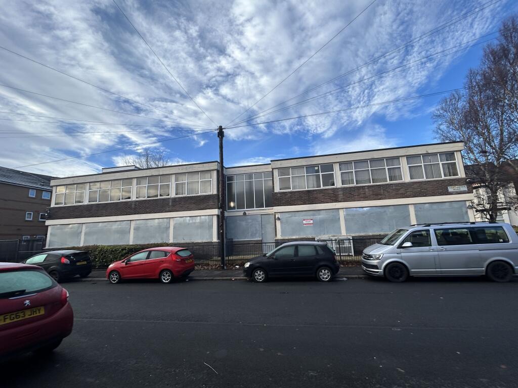 To the rear (southerly elevation) is a small car park/yard area with dual access/egress onto Lesseps Street and Hartington Road.