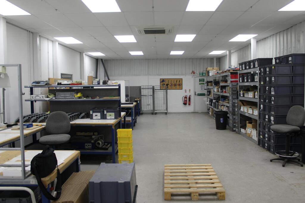 The Property comprises a modern industrial/warehouse unit within a terrace of four similar buildings. Built in 2001, the building is of steel portal frame construction offering clear span accommodation with a minimum eaves height of 7.2m. The ground floor provides clear span storage/production space with a series of rooms/offices along one side spanning from the front to the rear. At first floor level is a modern fitted office made up of a large open plan office, kitchen and two meeting rooms.
