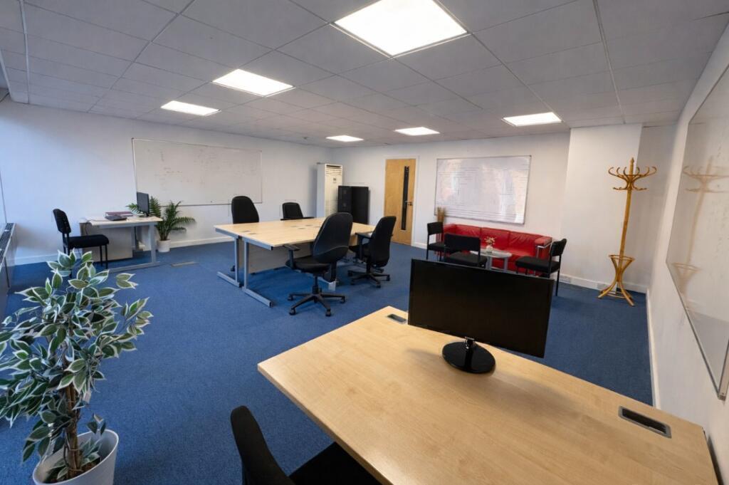 This well-presented 400 sq ft private office provides a bright, spacious, and professional working environment, ideal for growing teams or established businesses. Comfortably accommodating between 8 and 10 workstations, the layout is designed to support collaboration while maintaining an efficient and productive workspace.