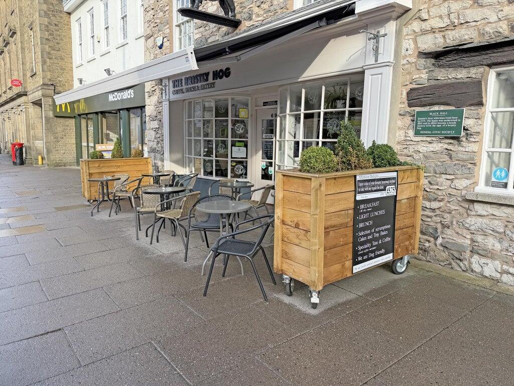 The Bristly Hog Café sits within a beautiful historic listed building dating back nearly 500 years, offering character and charm in a setting that reflects Kendal’s rich architectural heritage.