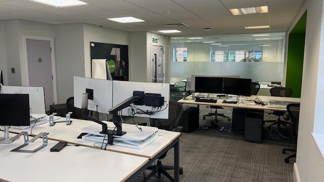 The accommodation comprises the ground and first floors of a two-storey modern office building with kitchen and wc facilities, comfort cooling and parking for 4 cars. The offices are currently fitted out as a large meeting room and catering facility on the ground floor and offices on the first floor. The intention is to be stripped of the current fit out and redecorated and recarpeted throughout.