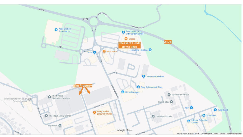 The property is prominently situated just off of the A174, in an established industrial location, with Teesworks, the UK's largest freeport, situated approximately 10 miles north of the property. Nearby occupiers include Asda, Aldi, Home Bargains, McDonald's and Skelton Trade Park, which features national businesses such as Howdens, Screwfix, and Toolstation.