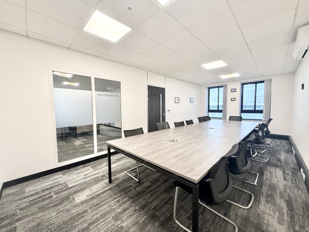 The space benefits from strong natural light and an attractive outlook towards the River Mersey, with one meeting room also providing access to a small balcony overlooking the waterfront.