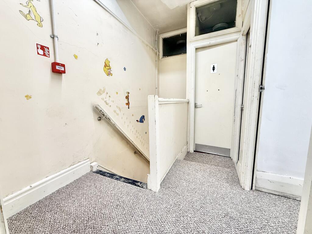 The first floor comprises a series of well-proportioned rooms arranged off a central corridor. These areas were previously used for childcare / day-care purposes and now offer flexible accommodation suitable for offices, consultation rooms, treatment rooms, training space or ancillary workspace, supporting a wide variety of commercial uses.