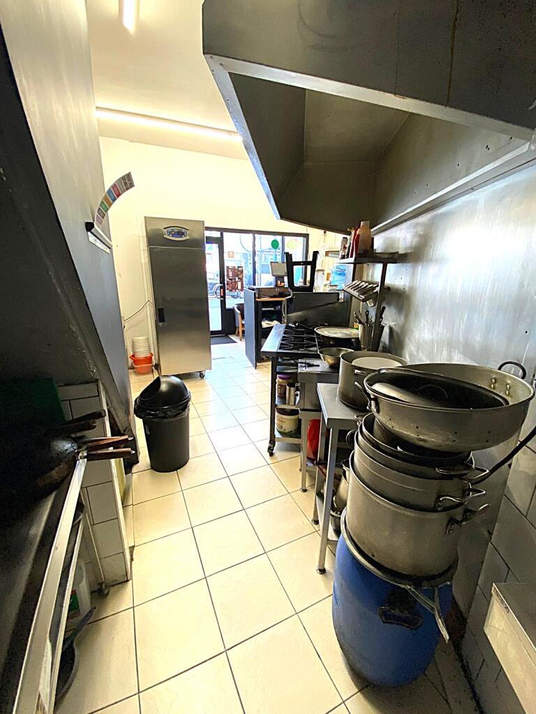 The lease is for the whole building, and on the ground floor is the customer serving area and commercial kitchen, and on the first floor a large storeroom, and cloakroom with WC and wash hand basin.