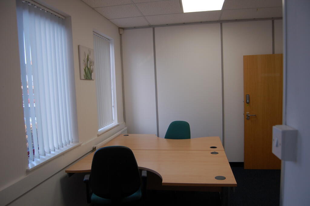 Ground floor 1- 2 person office with desks, chairs, cabinet, natural daylight, air con, lockable door. Immediately availble and includes handset, direct dial number, internet, business rates, electric, gas, and other utilities. Cleaning, building insurance and health and safety compliance for the building. Reception is open 8.30 -4.45 daily and they handle mail incoming and offer outgoing mail/parcel service additionally along with customer meet and greet. Waiting areas, meeting rooms, training rooms and boardroom hire also available within the building. Communal kitchens on each floor and toilet facilities for males and females and disabled. Flexible terms allow upsizing as your business grows. Easy payment terms and some IT support also offered. Our serviced offices offer a complete support service with friendly informal atmosphere. We may even be able to adapt our space to suit your needs. Please contact us to ask.