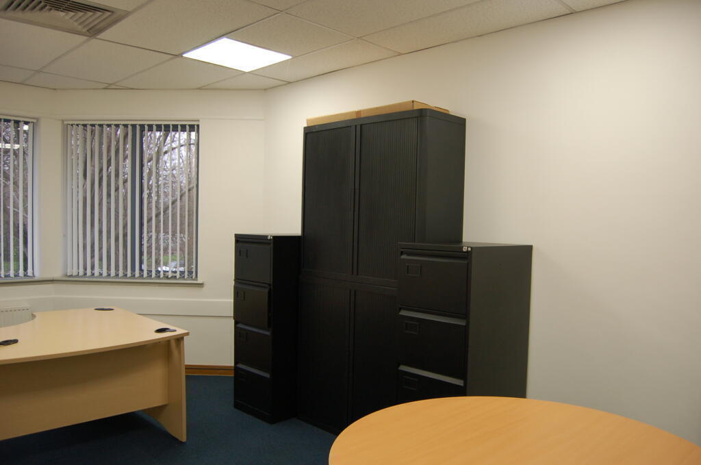1st floor - Really impressive bright and forward facing split office with interconnecting door internally, will accommodate 4-7 desks with desks, chairs, cabinet, natural daylight, air con, opening window, lockable door. Main walk in office has 4 desks and the internal office will take 2-3 desks or a manager's deks and a meeting room table. Immediately available and includes handset, direct dial number, internet, business rates, electric, gas, and other utilities. Cleaning, building insurance and health and safety compliance along with security for the building. Reception is open 8.30 -4.45 daily and they handle mail incoming and offer outgoing mail/parcel service additonally along with customer meet and greet. Access for clients is 24/7. Waiting areas, meeting rooms, training rooms and boardroom hire also available within the building. Communal kitchens on each floor and toilet facilities for males, females and disabled. Flexible terms allow upsizing as your business grows. Easy payment terms and some IT support also offered. Our serviced offices offer a complete support service with friendly informal atmosphere. We may even be able to adapt our space to suit your needs. Please contact us to ask. Great office for a manager /interview room and a separate 4 person office for staff.
