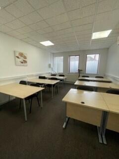 Ground floor 4-6 person office with desks, chairs, cabinet, natural daylight, air con, opening windows, lockable door. Immediately available and includes handset, direct dial number, internet, business rates, electric, gas, and other utilities. Cleaning, building insurance and health and safety compliance and security for the building. Reception is open 8.30 -4.45 daily and they handle mail incoming and offer outgoing mail/parcel service additionally along with customer meet and greet. Access for clients is 24/7. Waiting areas, meeting rooms, training rooms and boardroom hire also available within the building. Communal kitchens on each floor and toilet facilities for males, females and disabled. Flexible terms allow upsizing as your business grows. Easy payment terms and some IT support also offered. Our serviced offices offer a complete support service with friendly informal atmosphere. We may even be able to adapt our space to suit your needs. Please contact us to ask.
