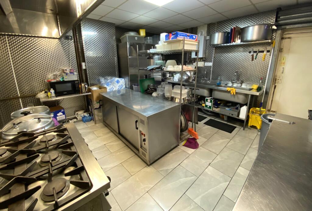 The large commercial kitchen is fully fitted and equipped, and the property benefits from canopies in both the restaurant and the kitchen.
