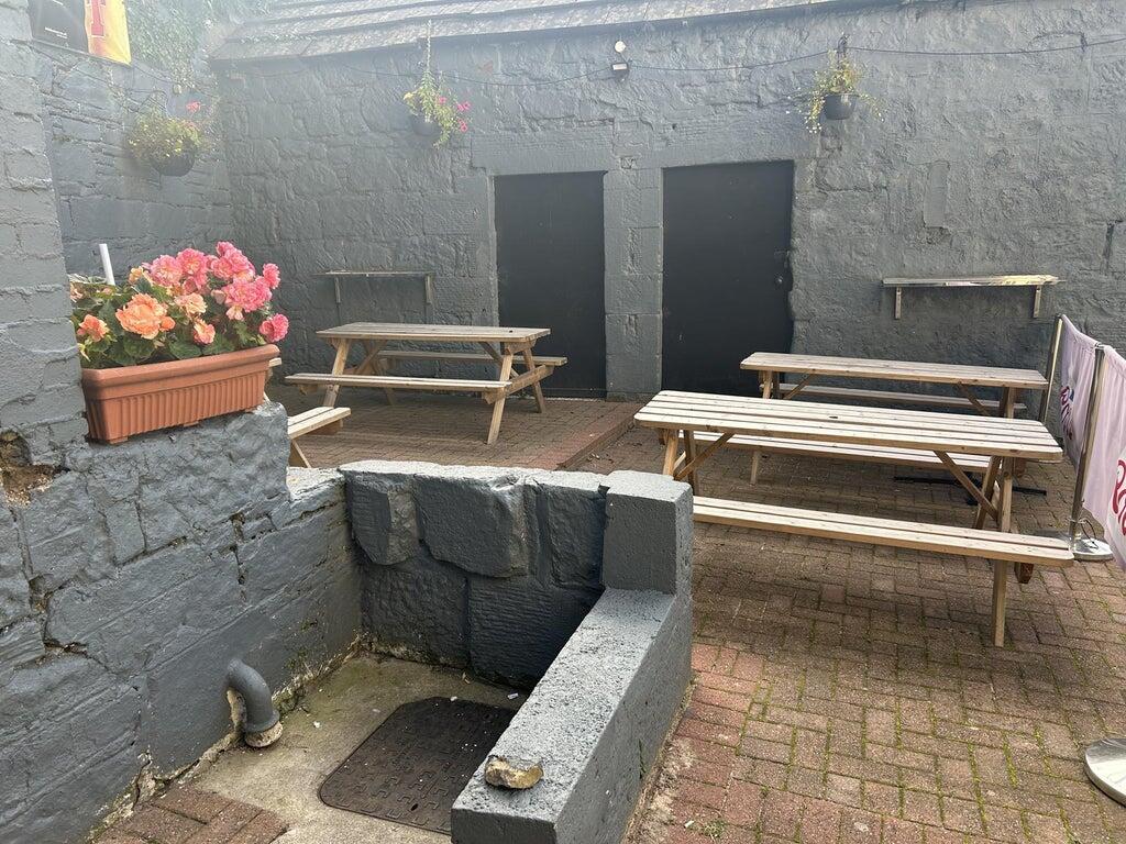 To the rear is a sizeable private car park, a covered smoking area, a small outbuilding suitable for storage and a large outhouse with business potential.