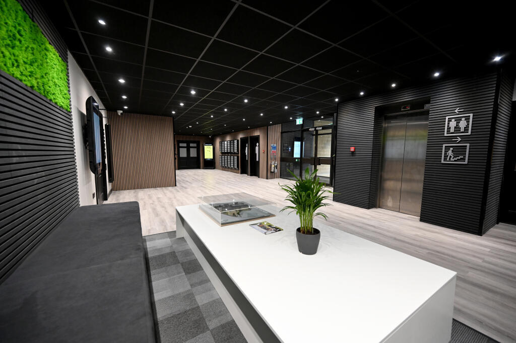 All spaces benefit from 24-hour secure access, a large 80-space car park with free parking, and access to high-quality shared amenities including breakout areas, tea prep kitchens, meeting rooms, and acoustic meeting booths. A private gym space is also planned.